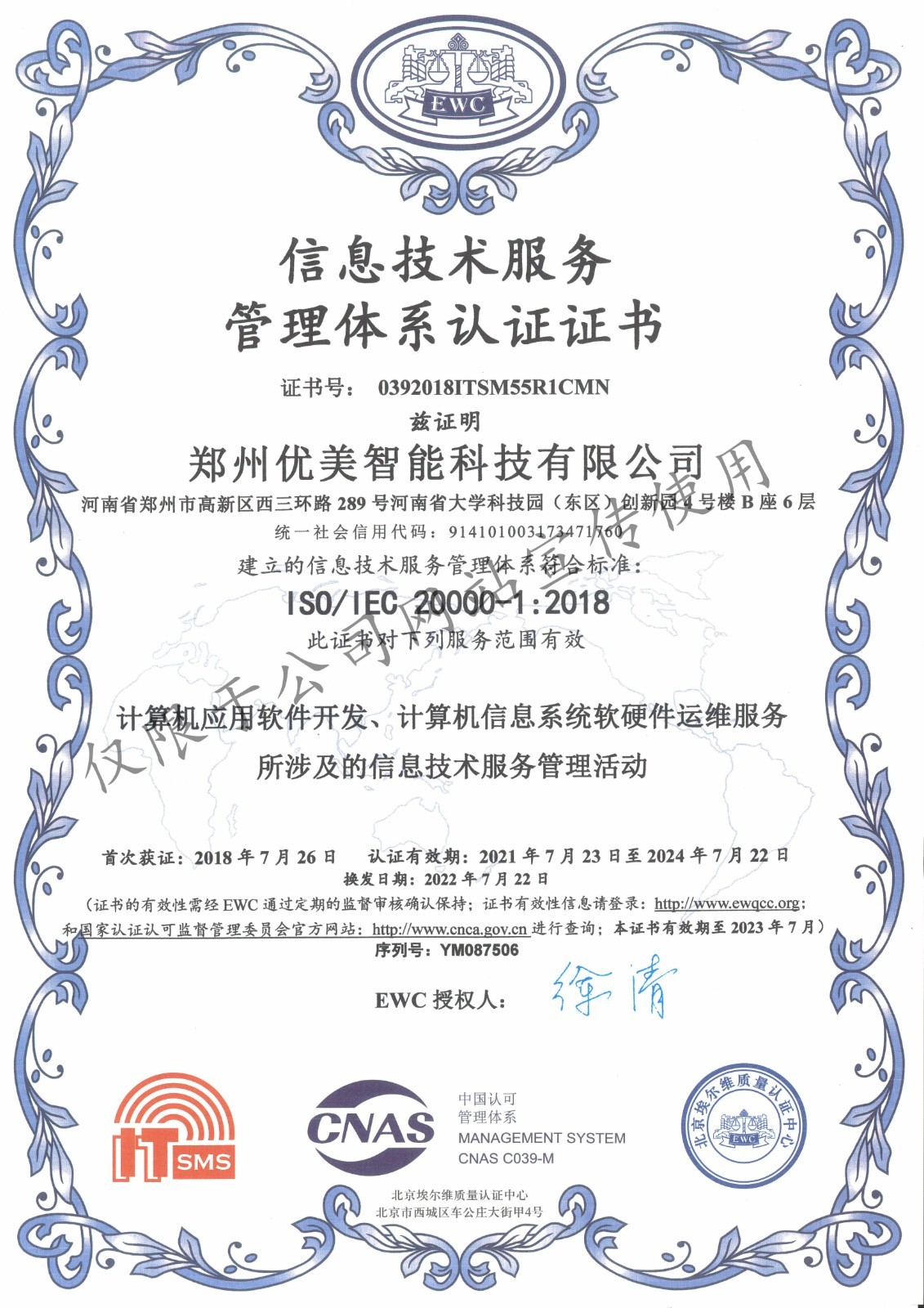 ISO20000信息手艺效劳治理系统认证证书